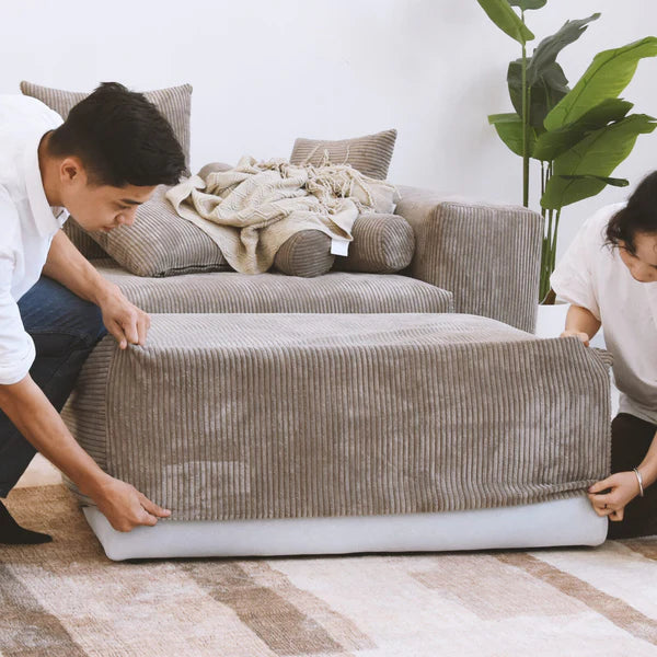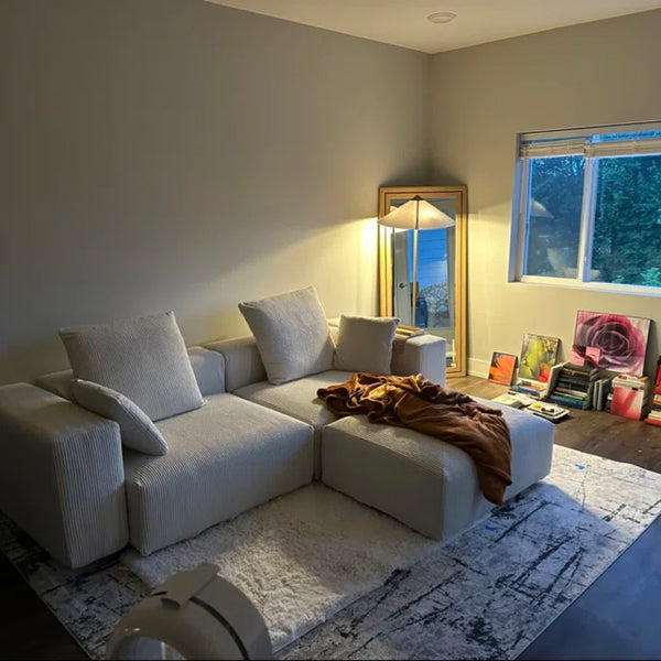 I was nervous ordering such a big couch for my walk-up apartment, but the modular boxes made delivery manageable. (*though each box can still weigh up to 80 pounds!) It took me and my brother about an hour to set it up. Fits my space perfectly and feels way more premium than the price.