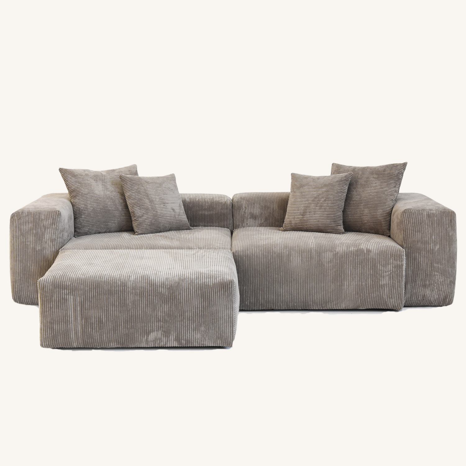 I was nervous ordering such a big couch for my walk-up apartment, but the modular boxes made delivery manageable. (*though each box can still weigh up to 80 pounds!) It took me and my brother about an hour to set it up. Fits my space perfectly and feels way more premium than the price.