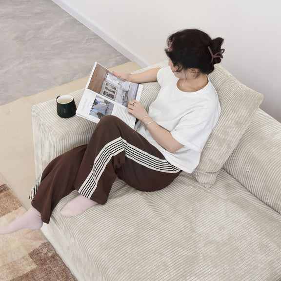 I live in a one-bedroom and got the loveseat + ottoman. It fits without overwhelming the room, and the deep seat is chef’s kiss for reading. Firm at first, then softens just a touch after a week. Shipping was staggered by a day, but Broma provided tracking information a day after I ordered, so I knew what to expect.