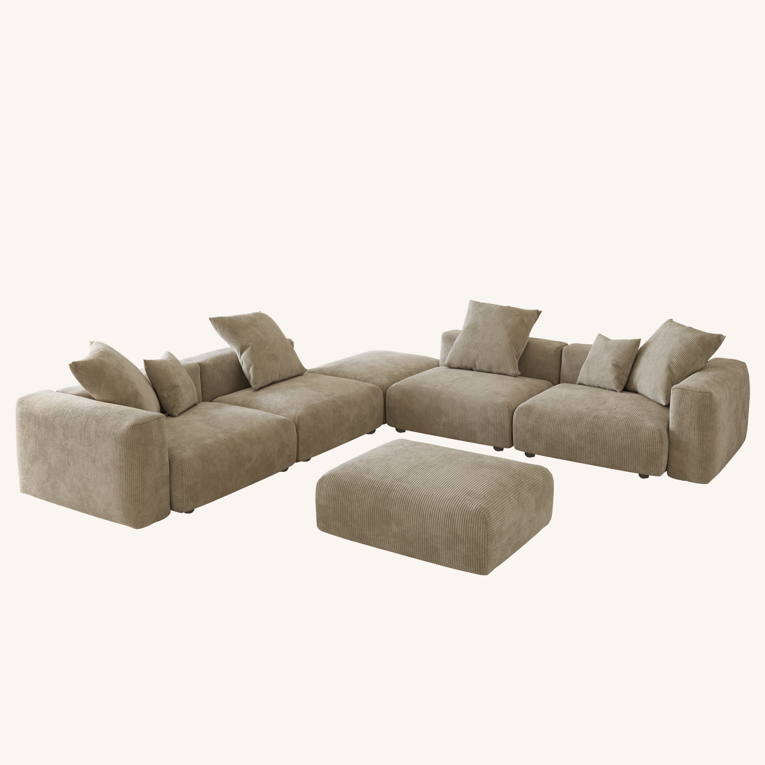 Corduroy 5-Seat Corner Sectional + Ottoman in Sandstone