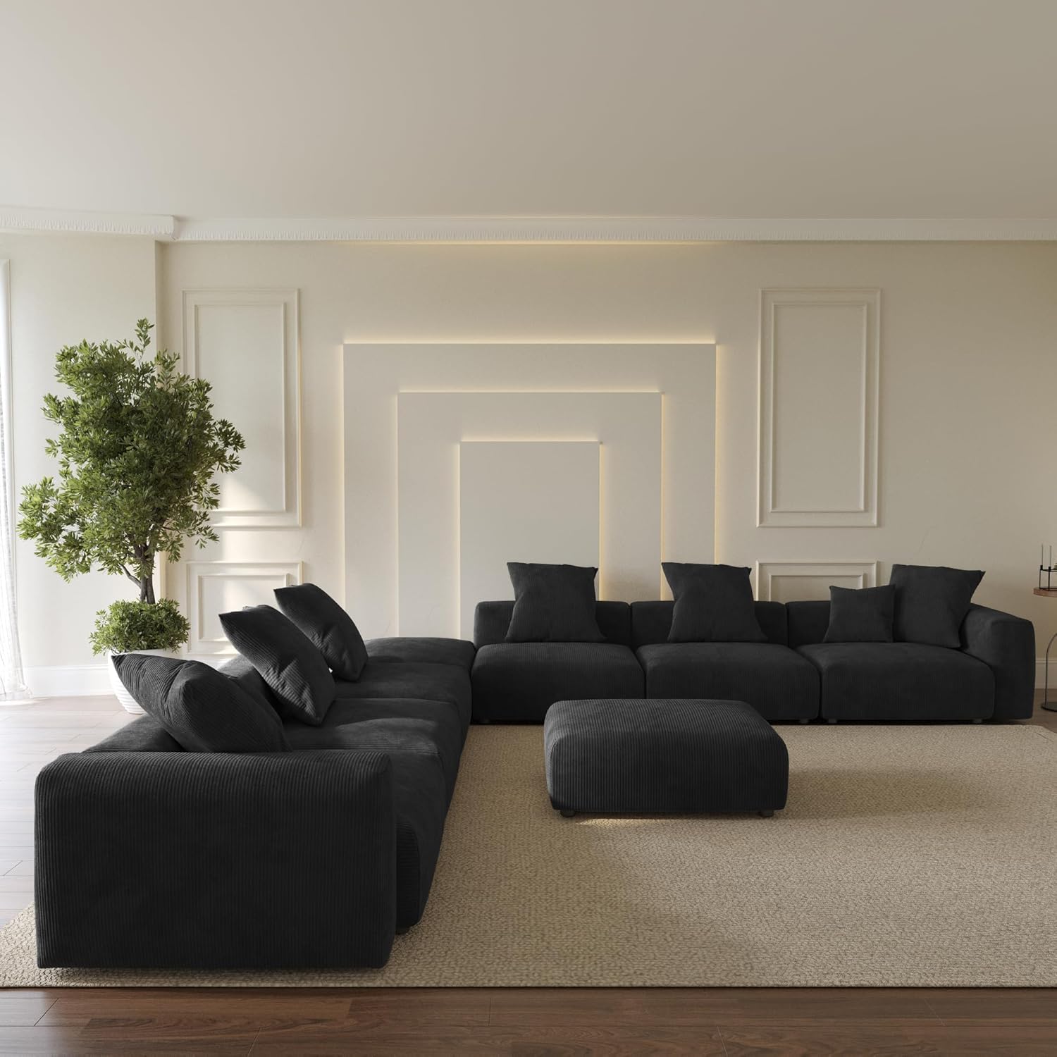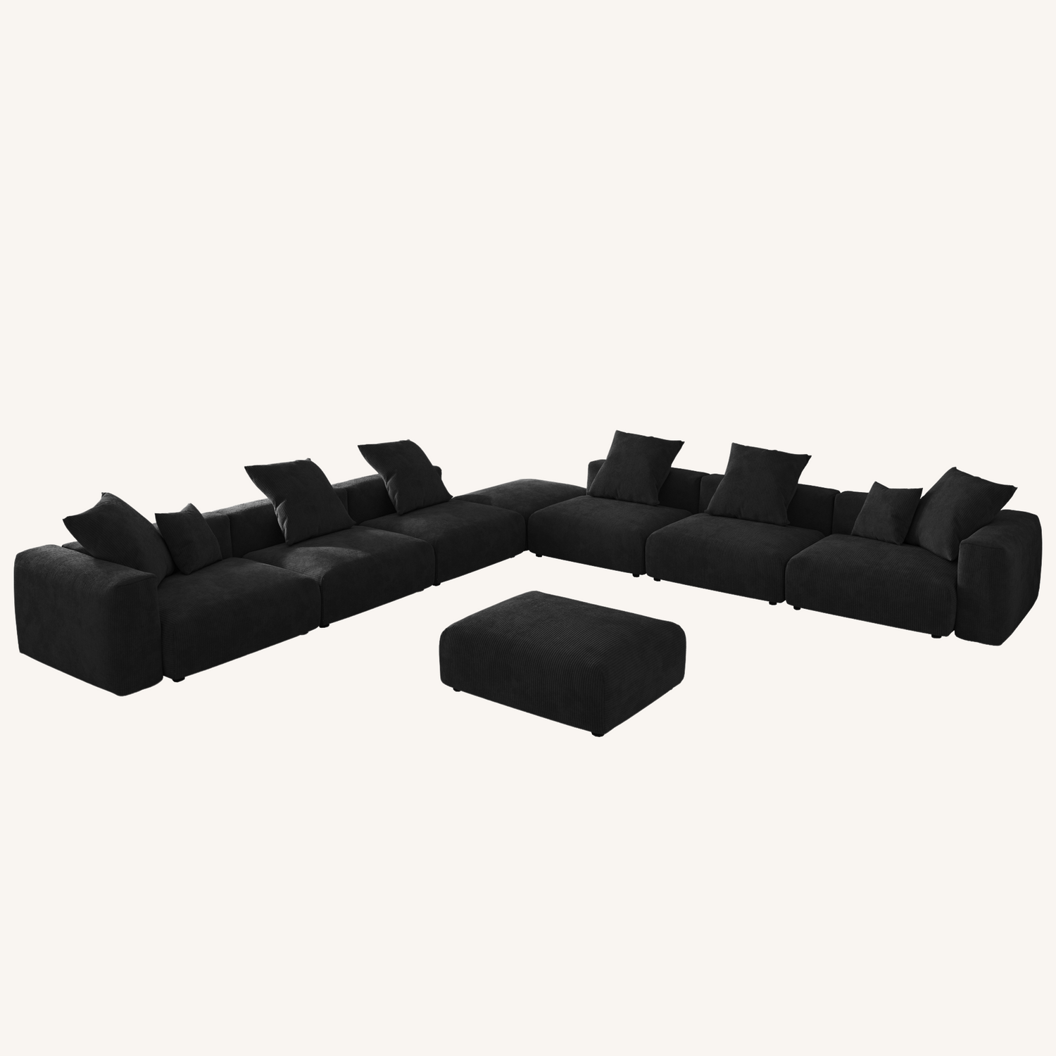 Corduroy 7-Seat Corner Sectional + Ottoman in Obsidian