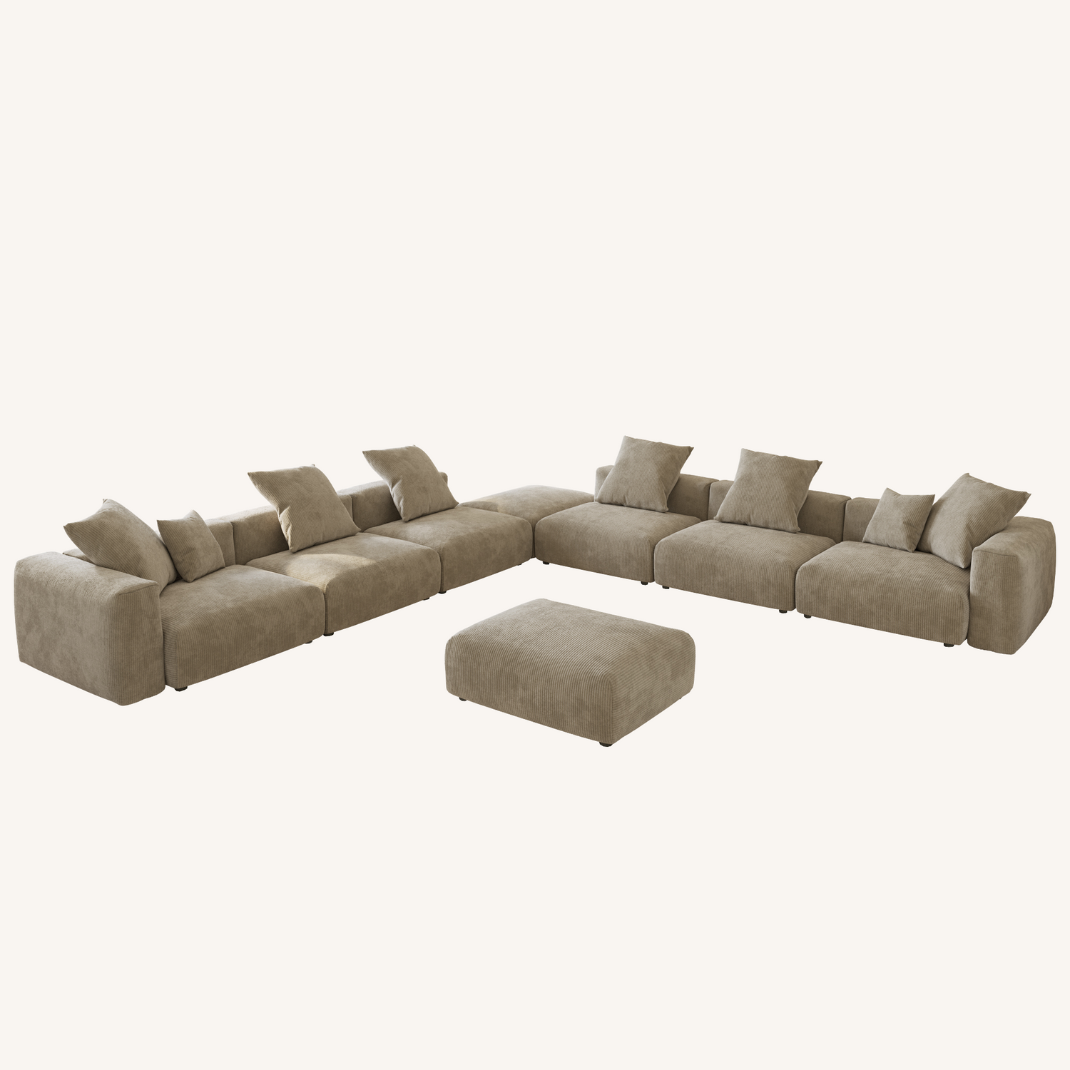 Corduroy 7-Seat Corner Sectional + Ottoman in Sandstone